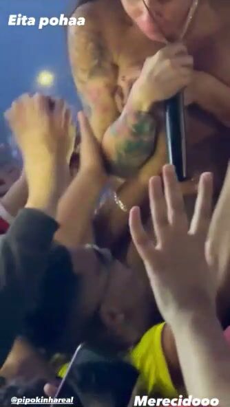 Show da mc Pipokinha rolou muita putaria. a gostosa foi no meio dos fãs de calcinha fio dental e peitos a mostra. os fã nao aguentaram e arranca a roupa dela, no video os mlk passa a mao em seus peitos e bunda.
