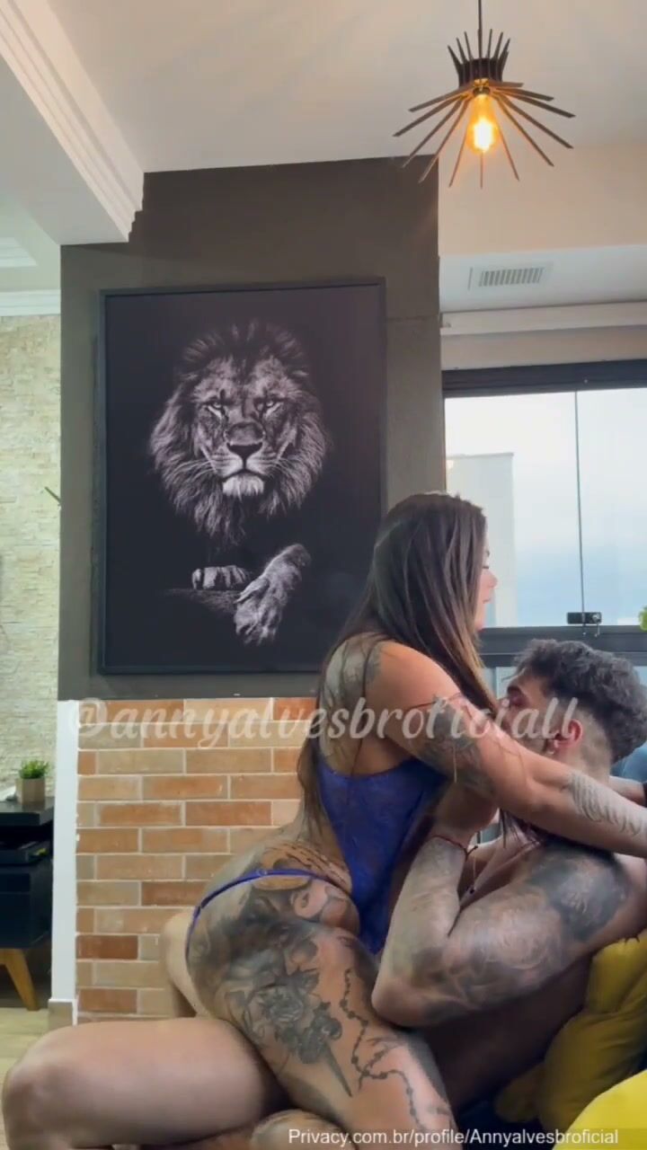 Anny Alves fodendo com o tatuado, ele fica deitado no sofá ela vem por cima e bota essa linda xota na boca dele, ele começa chupar o seu grelo bem gostoso, e depois ele senta no sofá, ela vem por cima e começa cavalgar no pau dele com essa enorme bunda.