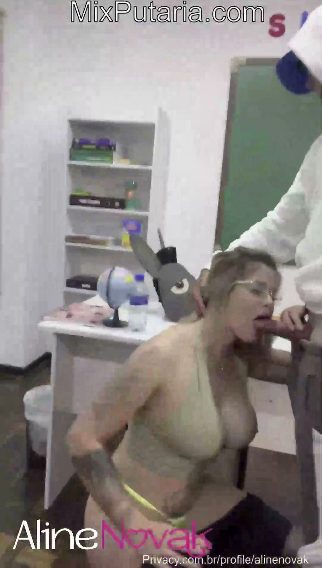 Aline novak porno amador na escola, professora loira peituda da buceta rosa, fez esse video amador para o privacy, ela esta dando aula particular para dois alunos pervertidos, os alunos chama ela para brincadeira, ela é bem gostosa e está com uma roupa bem colada, os alunos manda ela abaixa a roupa e mostra o bundão gostoso, depois alinenovakoficial faz sexo oral nos dois alunos e depois e fodida de quatro, professora da buceta rosa levando pau de dois alunos que fode com vontade.