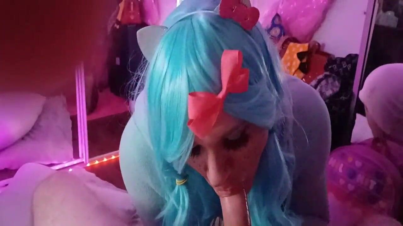 GOOD KITTY! giggling cumslut smiles while deep throating big cock
