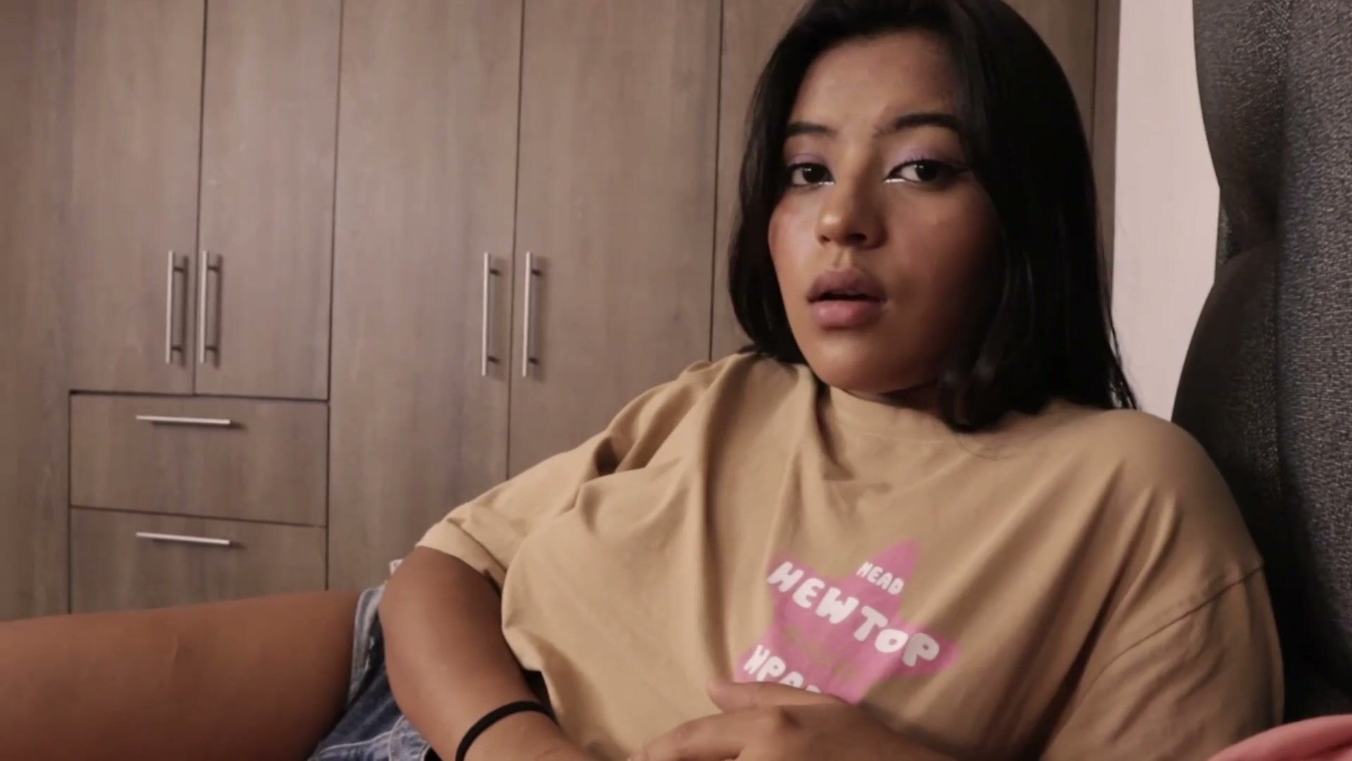 Moreninha cheia de fogo na buceta pornô caseiro